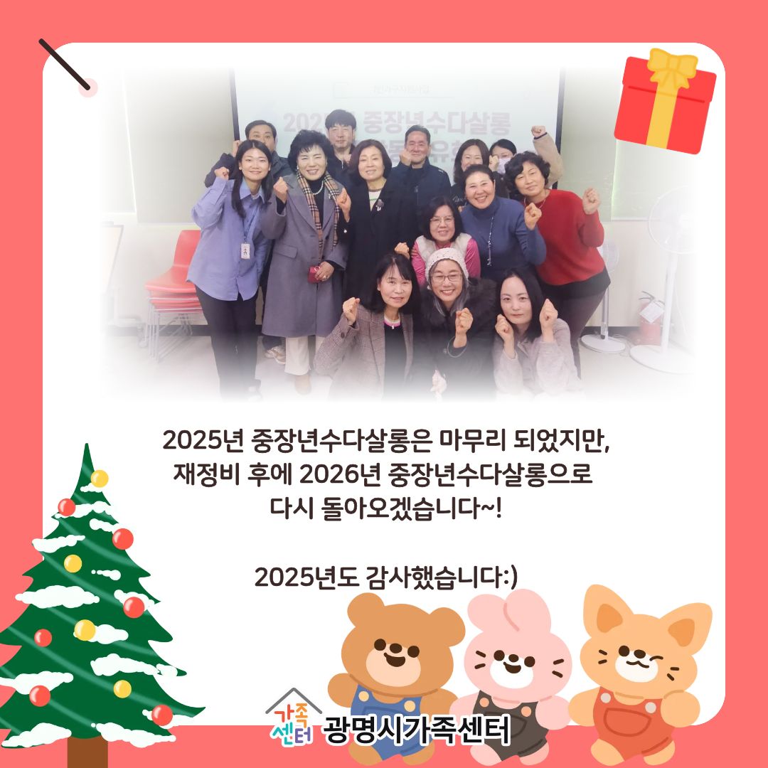 ±¤¸í½Ã°¡Á·¼¾ÅÍ¿¡¼ 3¿ùºÎÅÍ 12¿ù±îÁö ÁßÀå³â¼ö´Ù»ì·ÕÀ» ÁøÇàÇß½À´Ï´Ù!