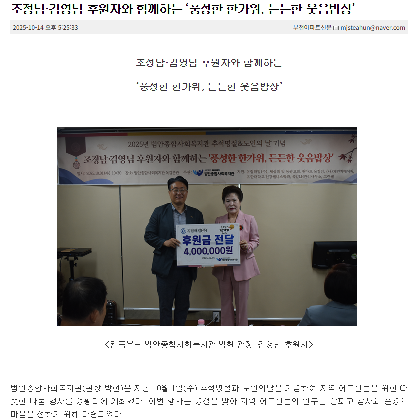 [¹ü¾ÈÁ¾ÇÕ»çȸº¹Áö°ü] ºÎõ ¹ü¾ÈÁ¾ÇÕ»çȸº¹Áö°ü, Á¶Á¤³²¡¤±è¿µ´Ô ÈÄ¿ø ¡®Ç³¼ºÇÑ ÇѰ¡À§'