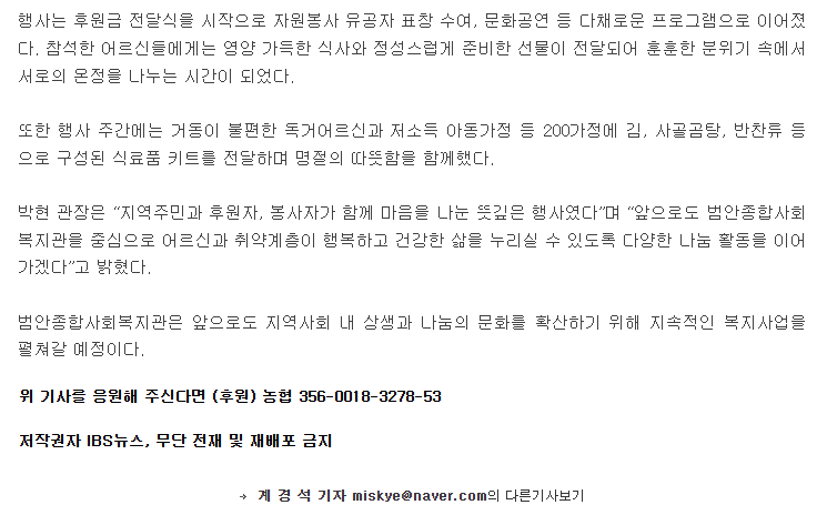 [¹ü¾ÈÁ¾ÇÕ»çȸº¹Áö°ü] ¡®»ç¶ûÀÇ ±èÀå±èÄ¡&¶ó¸é¡¯ Àü´Þ